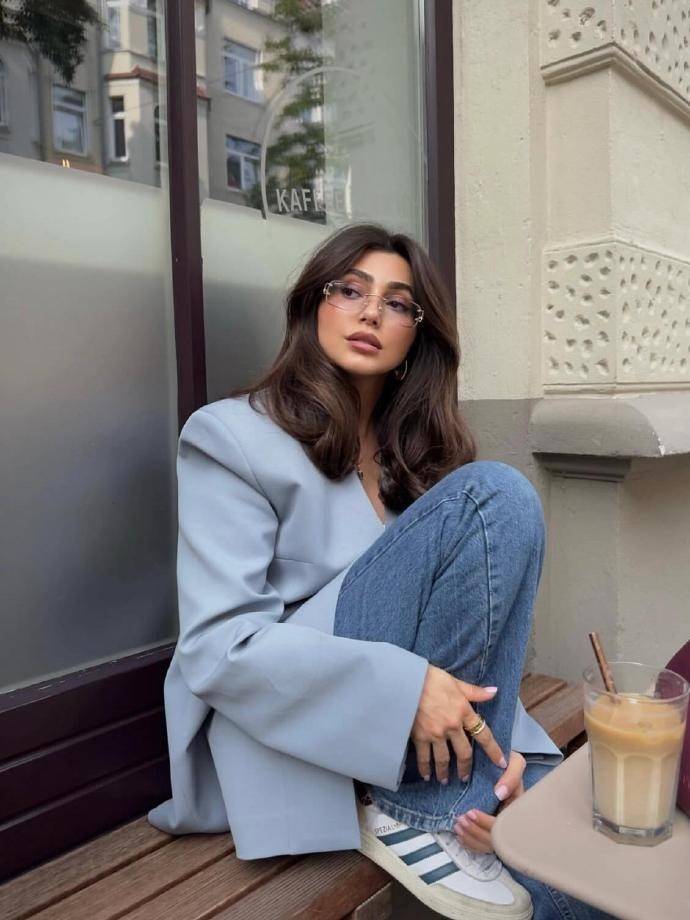 手脚德系穿搭的典型代表,aydahadi 把 “松懈感” 拿合手得恰到平允。她的穿搭很少有紧绷的筹议,大多遴选宽松阻抑的版型,既不会过于平缓,又能给体魄虚耗的舒展空间,自带一种随心清静的气场。比如她常穿的 Oversize 西装,搭配直筒牛仔裤和小白鞋,莫得刻意强调腰线,却能通过单品的比例均衡,显多礼态高挑又利落;或是用长款诚笃开衫搭配节约连衣裙,眼下踩一对乐福鞋,良善又大气,澈底不忙绿就赢了质感。