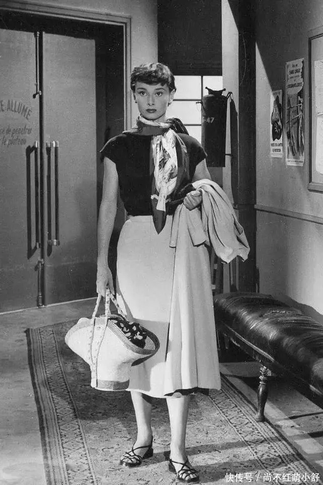 小丝巾在赫本手中变化无限,为造型注入灵动韵味。浅灰色丝巾搭配白色诚笃,崭新又贵气。而印花小丝巾系于颈间,与上衣色调呼应,细腻无比非凡。这类配饰动作点缀,持久弥新。